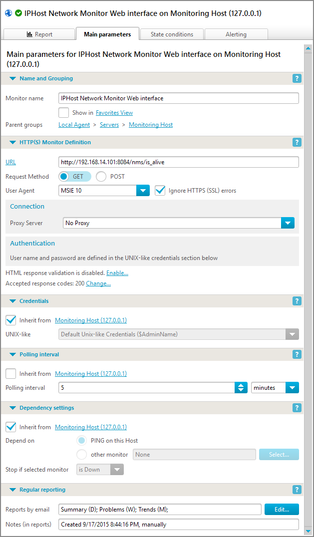 IPHost Network Monitor 中的基本元素是监视器; 它检查远程或本地计算机上服务的可用性,并请求某个参数的值。 监视器具有确定以下参数的参数: